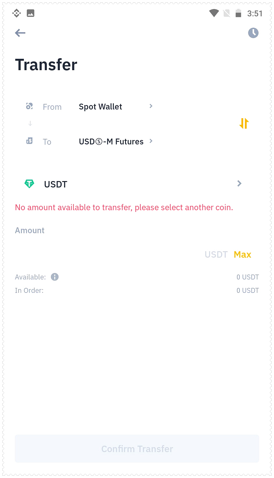 From에 Spot을 적고, To에 USDⓢ-M Futures로